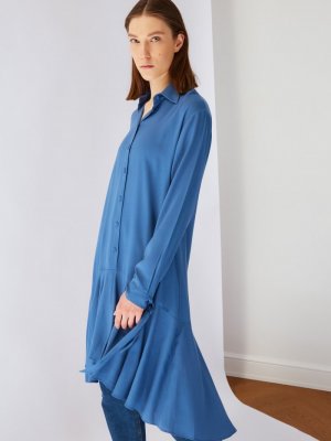 Trendyol Modest İndigo Gömlek Yaka Tunik Elbise