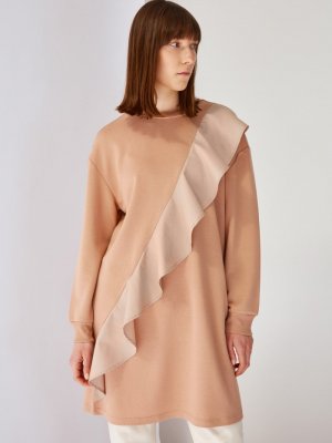 Trendyol Modest Bej Fırfır Detaylı Tunik