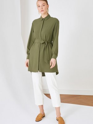 Trendyol Modest Yeşil Gömlek Yaka Tunik