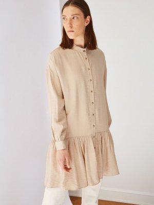 Trendyol Modest Bej Dik Yaka Tunik Elbise