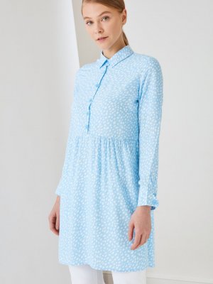 Trendyol Modest Mavi Gömlek Yaka Tunik Elbise