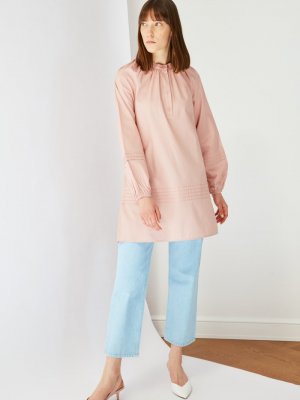 Trendyol Modest Pudra Bisiklet Yaka Tunik