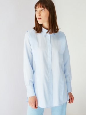 Trendyol Modest Mavi Gömlek Yaka Tunik
