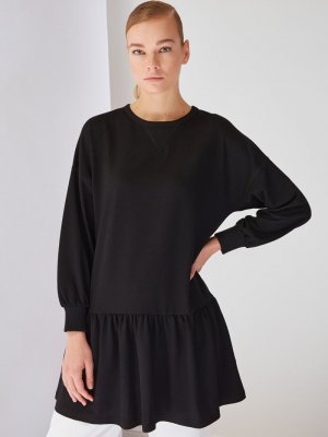 Trendyol Modest Siyah Etek Ucu Fırfırlı Tunik