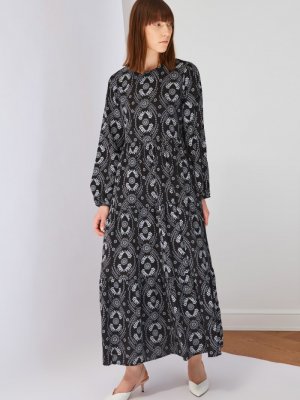 Trendyol Modest Siyah Desenli Elbise