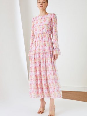 Trendyol Modest Ekru Desenli Şifon Elbise