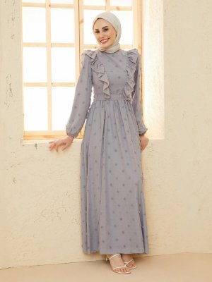 LOREEN Gri Volan Detaylı Elbise