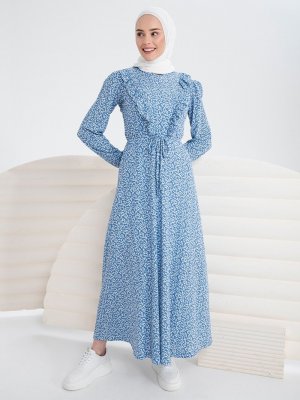 İnşirah İndigo Desenli Elbise