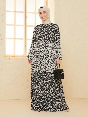LOREEN Siyah Bej Elbise