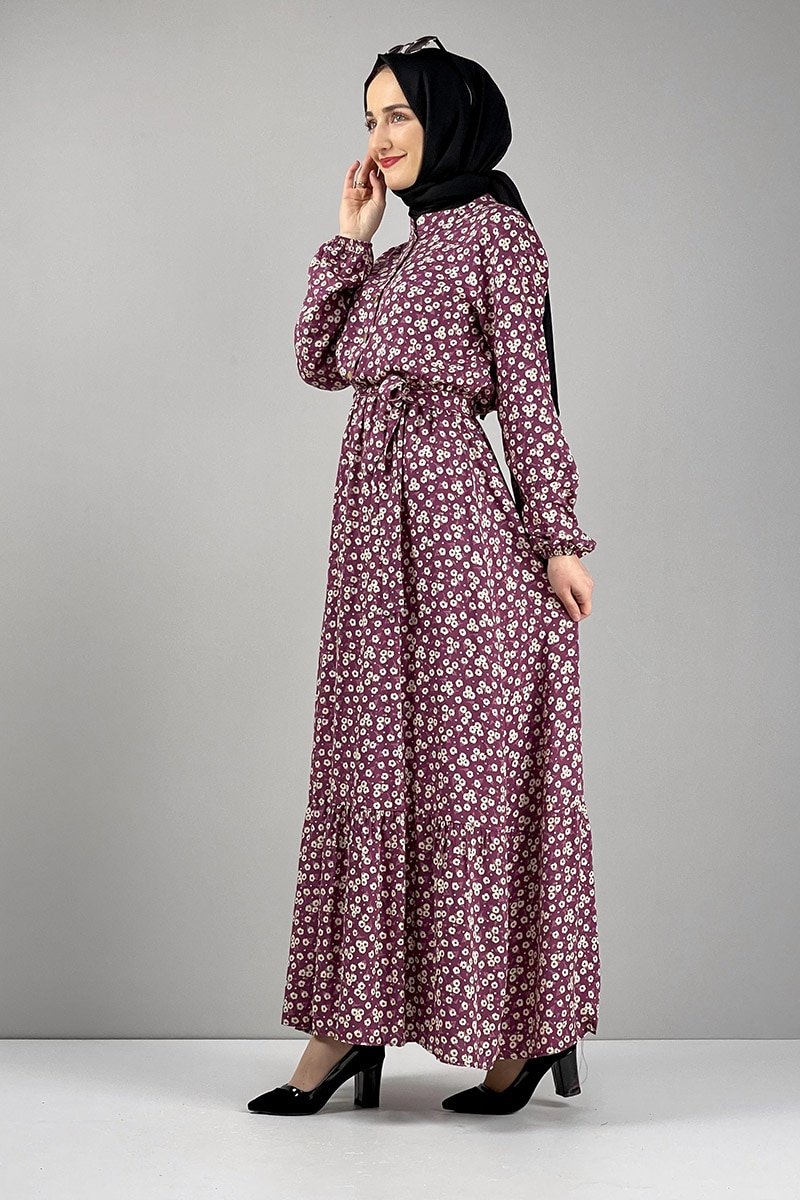 MODAPİNHAN Gül Kurusu Kemerli Desenli Elbise