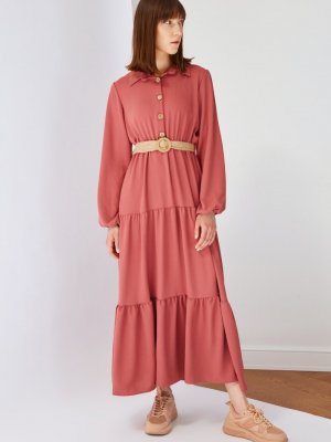 Trendyol Modest Gül Kurusu Kemerli Elbise