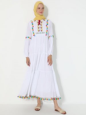 Elis Şile Bezi Beyaz Şile Bezi Nakış Detaylı Elbise