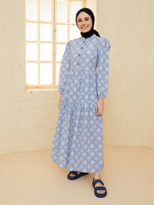 LOREEN İndigo Etnik Desenli Elbise