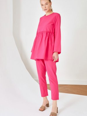 Trendyol Modest Fuşya Poplin Tunik Pantolon Alt Üst Takım