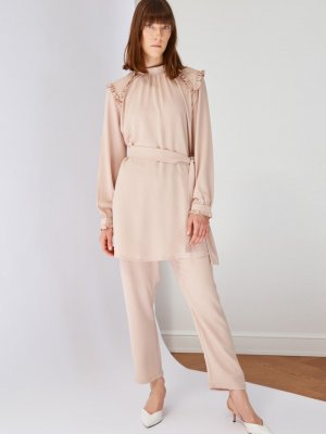 Trendyol Modest Bej Hakim Yaka Alt Üst Takım