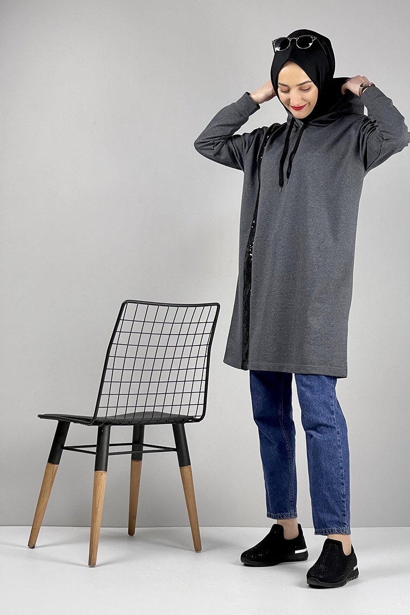 MODAPİNHAN Antrasit Pul Payet Detaylı Spor Tunik