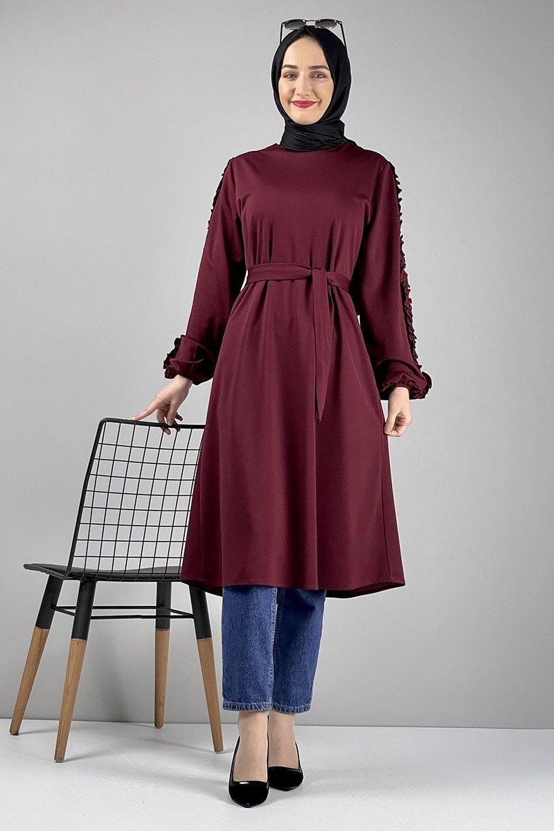 MODAPİNHAN Bordo Kol Detaylı Tunik
