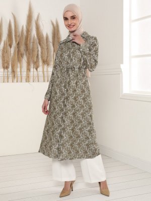 Tavin Haki Beli bağcıklı Jakarlı Tunik