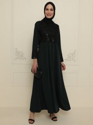 Gold Dresses Yeşil Dantel Detaylı Abiye Elbise