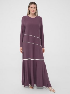 Alia Mistik Mor Ekru Büyük Beden Biye Detaylı Elbise