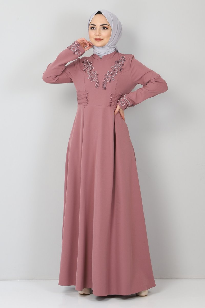 MISSVALLE Gül Kurusu Güpürü İncili Elbise