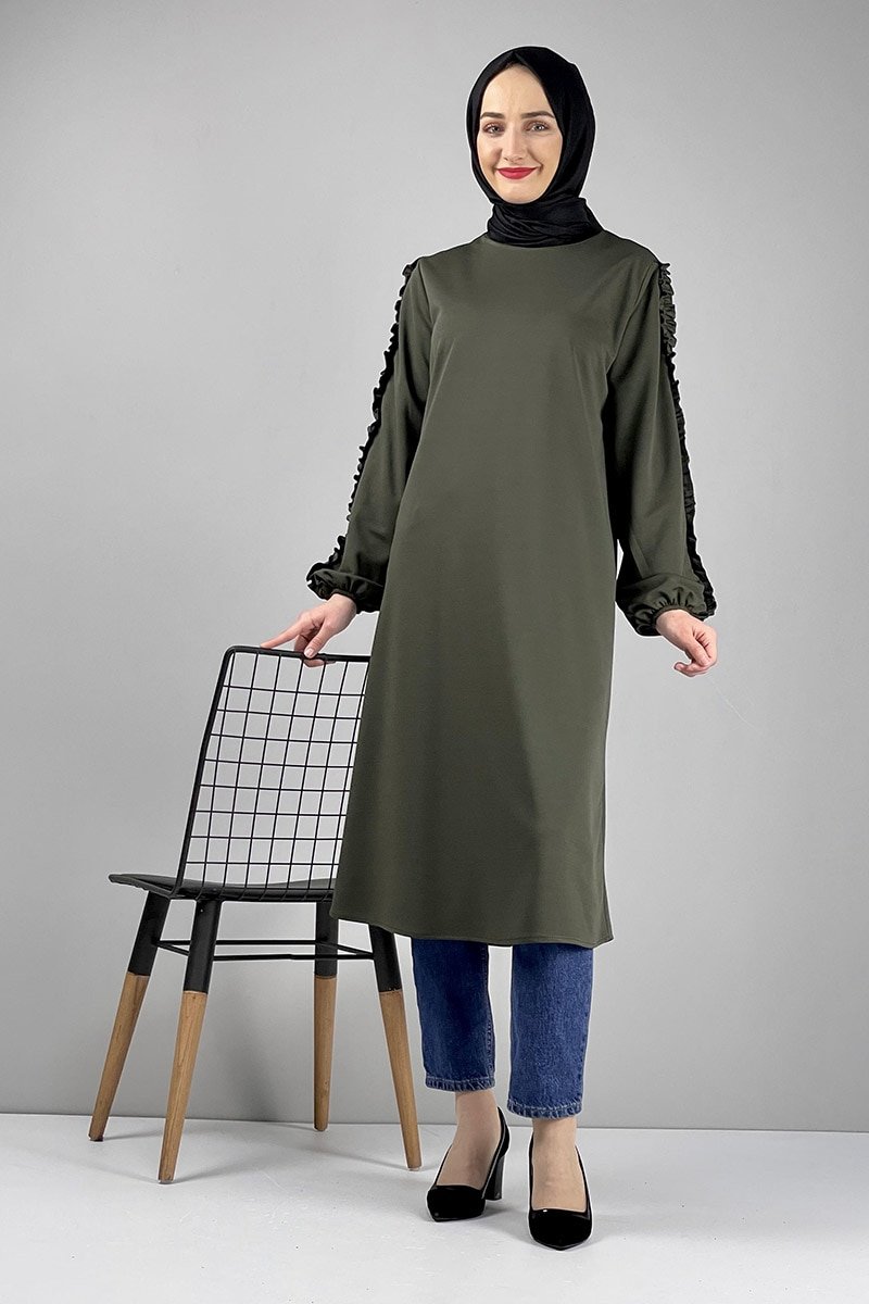 MODAPİNHAN Haki Kol Detaylı Tunik