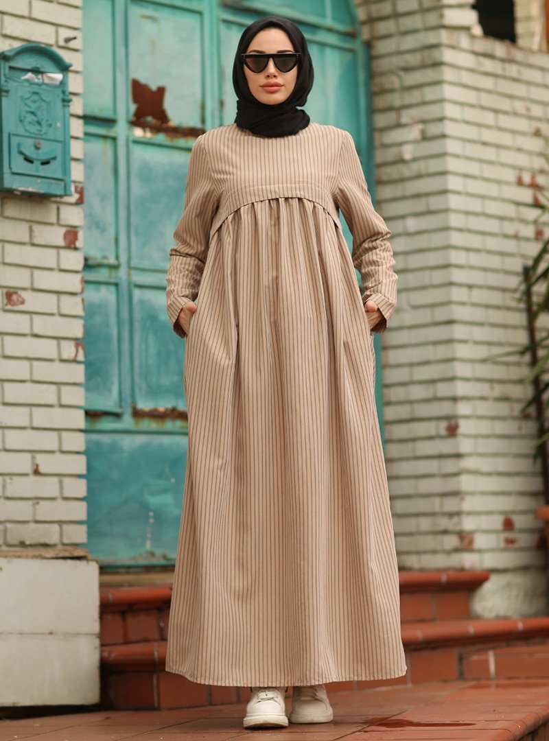 Neways Vizon Cep Detaylı Çizgili Elbise