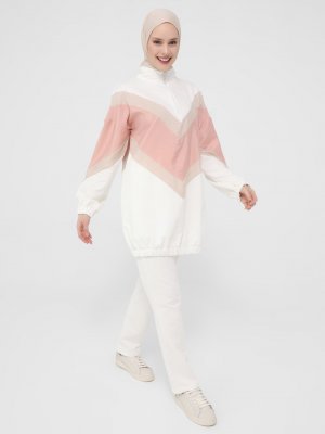 Benin Beyaz Paraşut Garnili Yarım Fermuarlı Renk Bloklu Takım