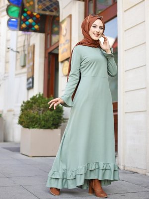 Tofisa Açık Yeşil Bisiklet Yaka Elbise