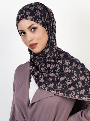 Balse Eşarp Lacivert Pudra Viskon Papatya Desen Şal