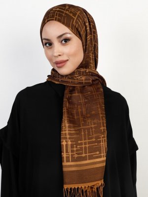 Balse Eşarp Kahve Gold Viskon Kibrit Desen Şal