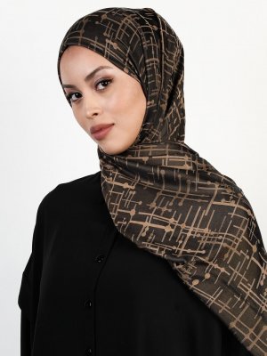 Balse Eşarp Siyah Gold Viskon Kibrit Desen Şal