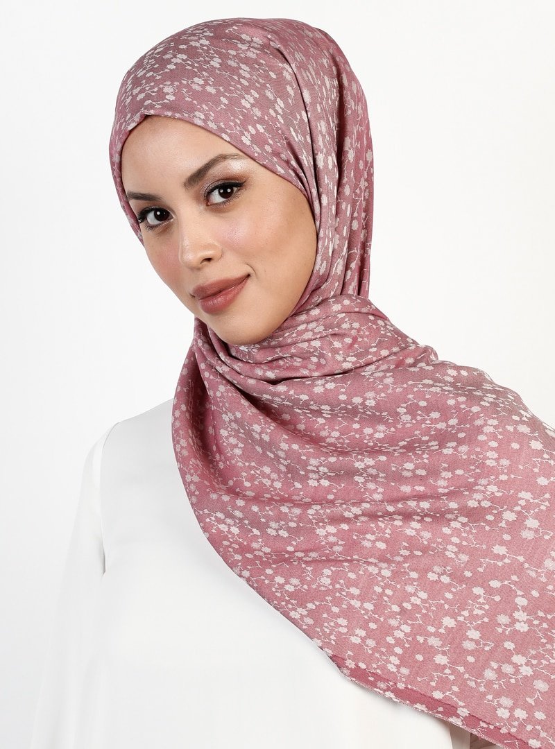 Balse Eşarp Gül Kurusu Bej Viskon Sarmaşık Desen Şal