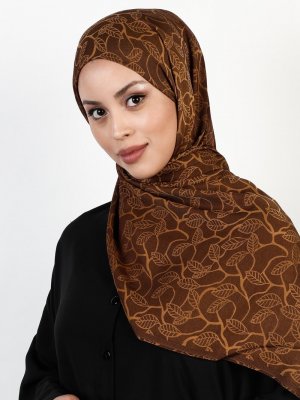 Balse Eşarp Kahve Gold Viskon Yaprak Desen Şal