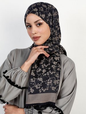 Balse Eşarp Lacivert Vizon Viskon Papatya Desen Şal