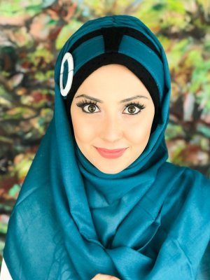 BUTİK AMBAR Petrol Sayf Model Tokalı Kemerli Şal