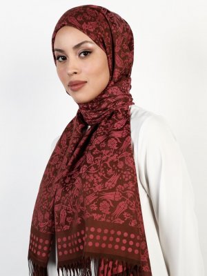 Balse Eşarp Kahve Mercan Viskon Lale Desen Şal