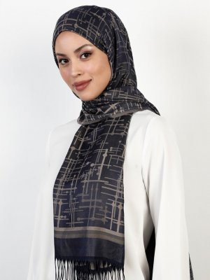 Balse Eşarp Lacivert Vizon Viskon Kibrit Desen Şal