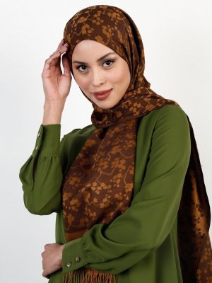 Balse Eşarp Kahve Gold Viskon Papatya Desen Şal