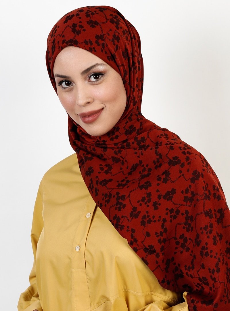 Balse Eşarp Taba Siyah Viskon Papatya Desen Şal