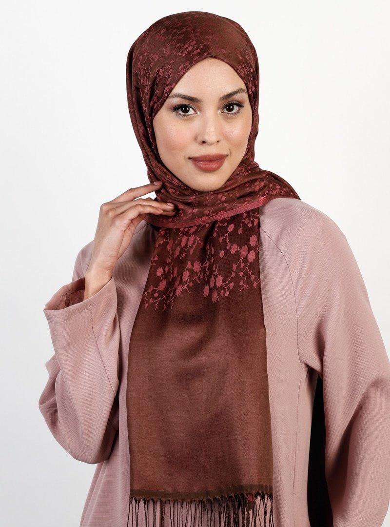 Balse Eşarp Kahve Mercan Viskon Sarmaşık Desen Şal