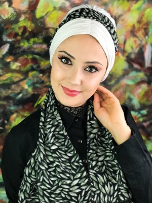 BUTİK AMBAR Bej Yapraklı Fularlı Büzgülü Bone