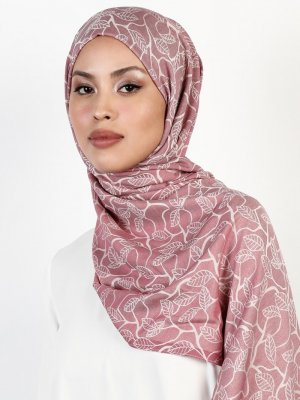 Balse Eşarp Gül Kurusu Bej Viskon Yaprak Desen Şal