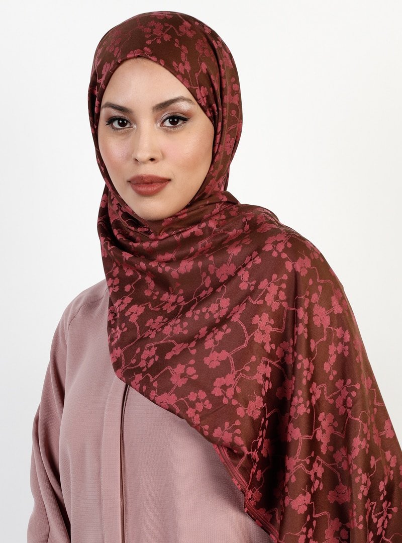 Balse Eşarp Kahve Mercan Viskon Papatya Desen Şal