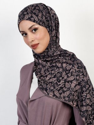 Balse Eşarp Lacivert Pudra Viskon Lale Desen Şal