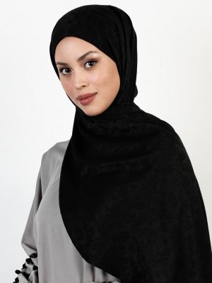 Balse Eşarp Siyah Viskon Lale Desen Şal