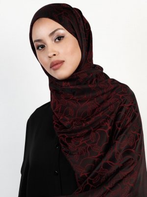 Balse Eşarp Siyah Bordo Viskon Yaprak Desen Şal