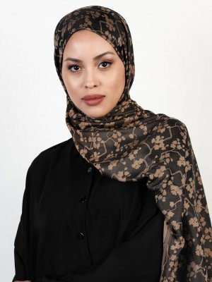 Balse Eşarp Siyah Gold Viskon Papatya Desen Şal