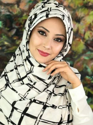 BUTİK AMBAR Beyaz Kare Desenli Atkılı Tokalı Şapka Şal
