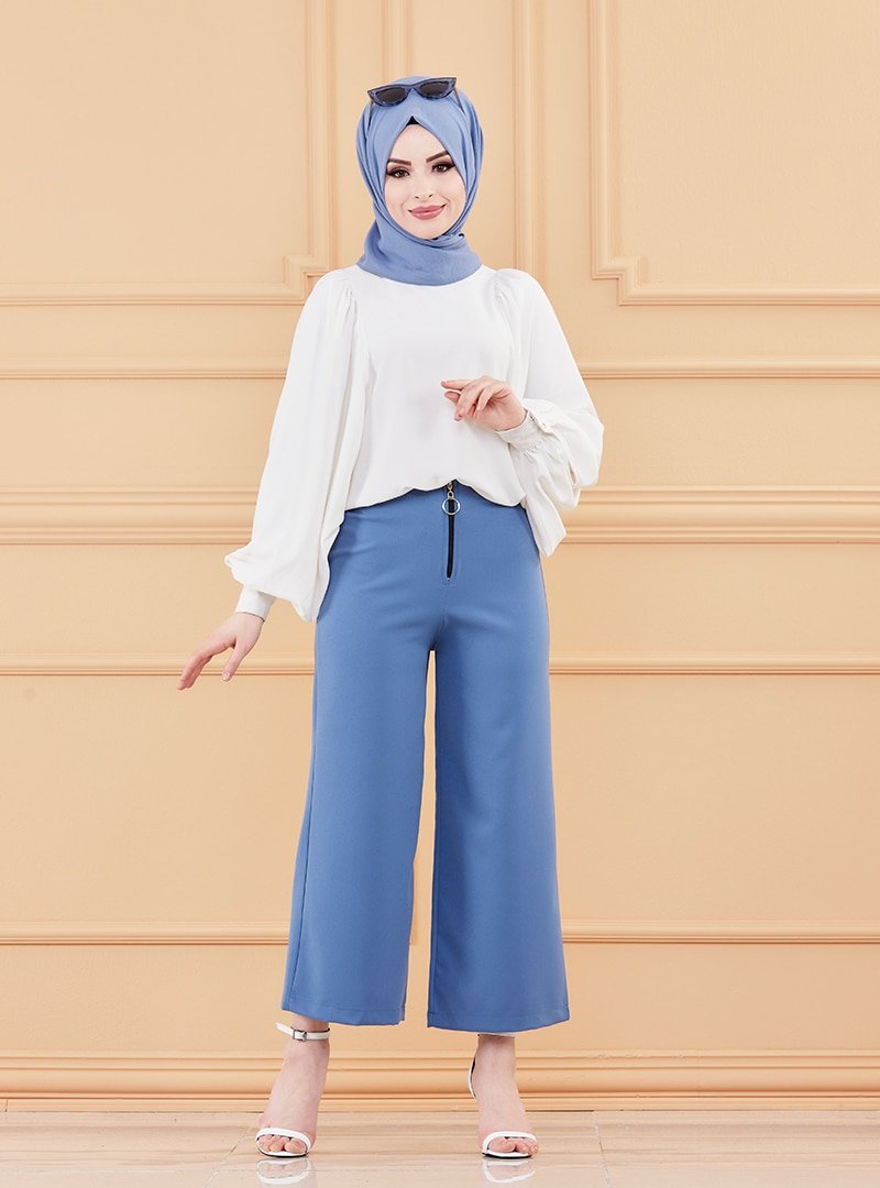 Tofisa İndigo Geniş Paça Fermuarlı Pantolon
